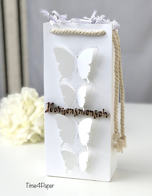 Die Schachtel wurde von mir dekoriert mit der Blumenstanze Zinnia von Moda Scrap.